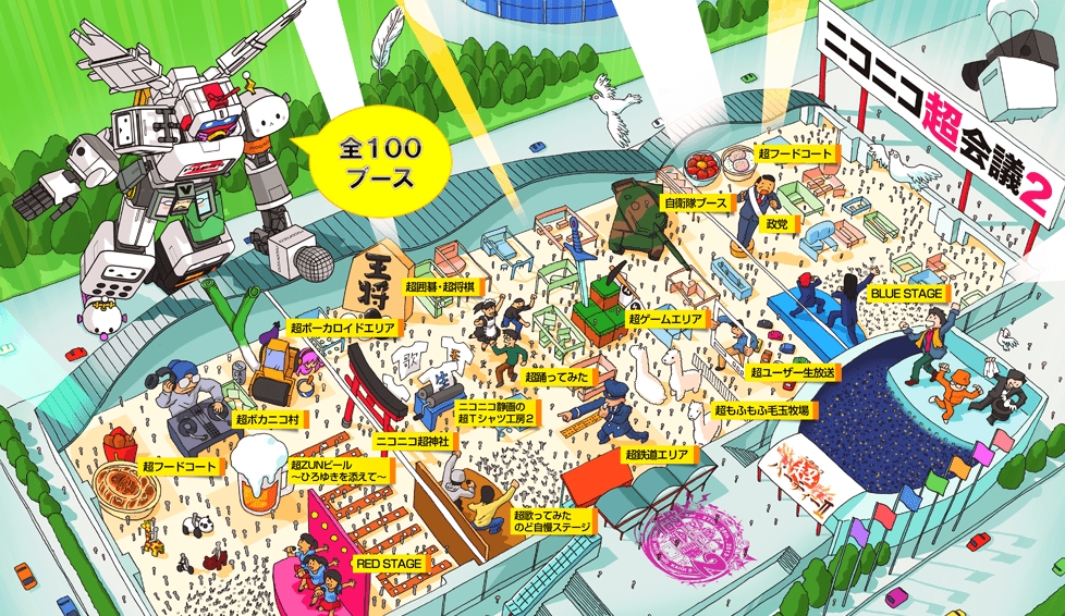 「ニコニコ超会議2」は、「超踊ってみた」や「超ボーカロイドエリア」、「超歌ってみた のど自慢ステージ」など、全100ブースからなる超巨大フェスイベント。