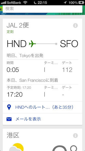 Google Nowは2012年5月から提供開始され、カレンダーに登録した打ち合わせのリマインダ、打ち合わせ先までの移動時間、交通状況に合わせた通勤経路、出張や旅行の際はフライト情報など、知りたい情報をちょうどいいタイミングで表示してくれるもの。