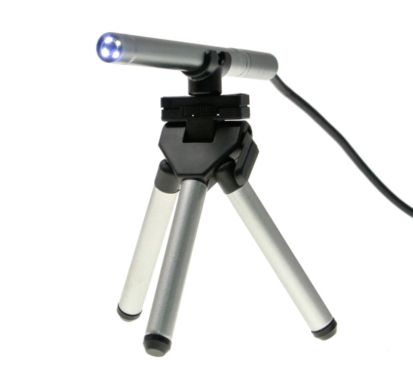 本製品では、Windows 7/Vista/XPに対応する付属ソフトを用いて対象を拡大表示できるほか、静止画撮影/動画撮影/測定(長さ/角度/円周/直径)も行える。本体の先端にCMOSセンサーと4つのLEDライト、ケーブルにLEDの明るさ調整ダイヤルと撮影ボタンが搭載されており、焦点距離は10mm〜。ピント調整は本体上部のダイヤルを回すことで実行できる。本体サイズは11(幅)×132(高さ)×11(奥行)mm、ケーブル長は約125cmで、重量は64g。