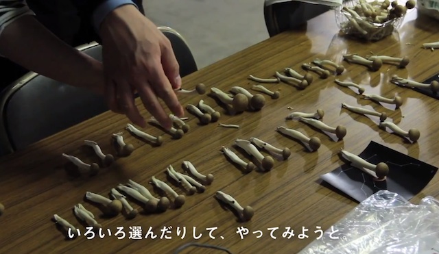 「しめじェクションマッピング」は、特設のスマートフォンサイトから入力したひらがなが、プロジェクションマッピングでグラフィック表示された実物のしめじによって擬似的に文字変換され、それを画面に表示するインスタレーションだ。