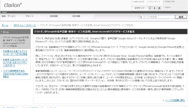 クラリオン、カーナビにクラウドサービスを提供するため、Googleの音声認識・検索技術を活用