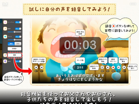 同アプリは、親子で楽しみながら子どもの知性を伸ばせる知育絵本アプリ。絵本は59作品で、全て無料。また、英語やスペイン語の絵本も取り揃えているので、初めての語学教材としても最適だ。さらに、アナウンサーによる読み聞かせを収録しているほか、録音機能を備えており親子で一緒に録音しながら絵本を読むこともできる。