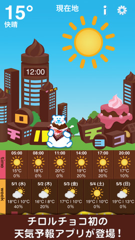 チロルチョコ、iPhone向け天気予報アプリ「チロル天気」を提供開始