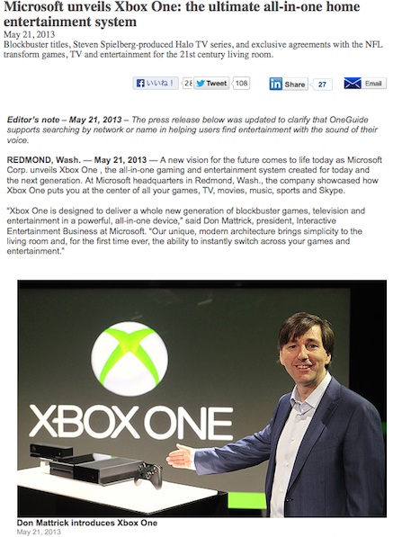Microsoft、オールインワンホームエンタテイメントシステム「Xbox One」発表