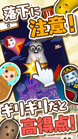 同アプリは落ちてくるマトリョーシカ人形めがけて画面をタップするアクションゲーム。人形をタップすると中から一回り小さいマトリョーシカが飛び上がり、タップしていくごとに小さくなっていくマトリョーシカを落とさずにどんどん開くことでポイントを獲得する。タップする位置により獲得ポイントが異なり、ランキング機能でスコアを競うことも可能だ。女の子柄やヒヨコ柄、招き猫柄など、さまざまなデザインのマトリョーシカを楽しめる。