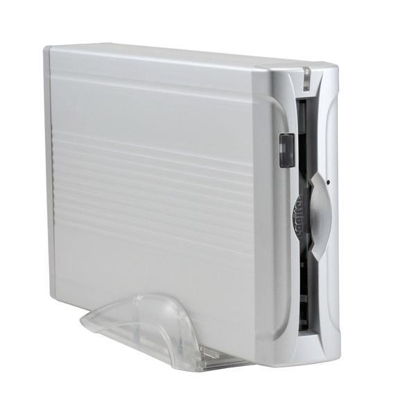 本製品は、富士通株式会社によるSCSI接続の内蔵MOドライブを外付け用に変換したモデル。650MB/540MB/230MB/128MBの3.5型MOに対応し、メディア資産を有効活用することができる。ファンレス設計のボディはアルミ製で、縦/横置きのいずれにも対応。パソコンと連動して自動的に電源ON/OFFを行う「PC電源連動機能」も搭載している。突起部/スタンドを除く本体サイズは35(幅)×204(高さ)×120(奥行)mmで、重量は810g。