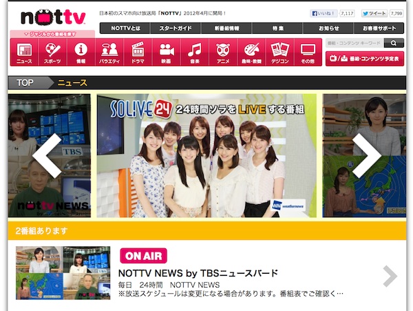 スマホ向け放送局「NOTTV」、2013年6月末で加入数が122万を突破