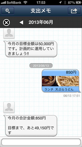 同アプリは支出金額やメモ、買った商品やレシートの写真などをひとつのデータとして記録できる支出管理アプリ。使ったお金を専用の数値入力ボードにメッセンジャー感覚で簡単に記録することが可能で、記録するたびにその月に使った金額と目標との差額をBOTが自動で教えてくれる。また、しばらく入力がないときにもBOTがリマインドしてくれる。