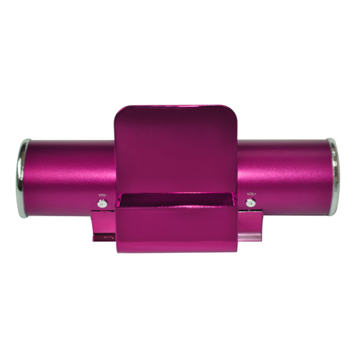 同製品はiPhone5またはiPod touch(第5世代)に対応したLightningケーブル対応スピーカー。電源は単4電池×4本またはUSBケーブルで、アルカリ電池使用時の再生時間は10~12時間。通電中は背面のLEDランプがブルーに点灯する。スピーカー出力は2.2W×2。サイズは78(高さ)×186(幅)×66(奥行き)mm、重量は約185g。カラーはブラック、レッド、ピンク、シルバーの4色。