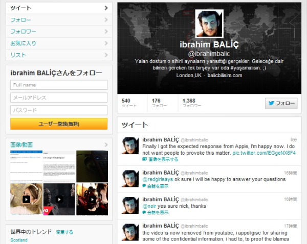 米Appleの開発者向けWebサイト「Apple Developer Center」が不正アクセスを受け、同社によってオフラインにされた問題に進展があった。サイトに侵入したのは自分だと主張するトルコのセキュリティ研究者Ibrahim Balic(イブラヒム・ベリック)氏が現れたのだ。