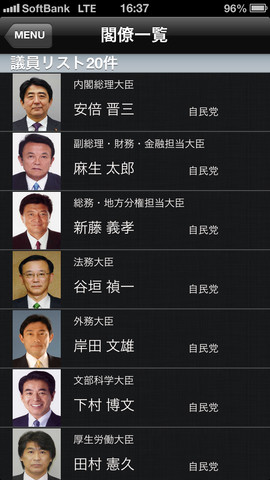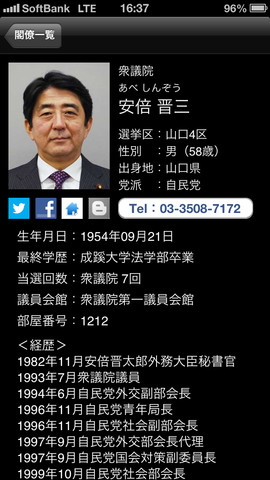 国会議員は、衆・参議院722人の顔写真/略歴/議員会館部屋番号/電話番号/ホームページURLなどを掲載。47都道府県知事・政令市長は顔写真と略歴を、一般市町村長は略歴を掲載しているという。また、補選、内閣改造によるデータ変更、衆議院の総選挙、参議院通常選挙による議員の大幅な入れ替えも速やかに更新される。