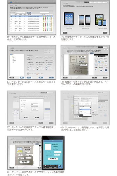 同ツールはスマートフォンとWebに対応したアプリをプログラミングの知識なしでも作成できるクラウド型サービス。難しいコーディングやプログラミングを意識することなく、パーツのドラッグ&ドロップやテキスト入力のみで短時間で簡単に作成できる。営業やマーケティングなどの現場で必要なアプリを、システム開発のスキルを持たない部門でも作成することが可能で、1ライセンスから導入可能だ。対応OSはiOS 5.0以上またはAndroid 2.3.3以上で、ネイティブアプリのほか、HTML5でのアプリ作成も可能。