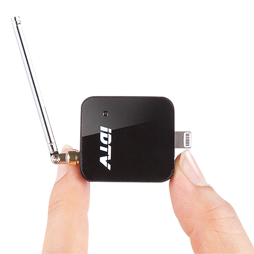 無料の専用アプリ「iDTV mobile」をインストールすることで番組を視聴できる。タイムシフト再生や録画、字幕表示、バックグランド再生、番組表の表示なども可能で、フリック操作でチャンネルを切り替えられる。サイズは31.8×35.0×13.0mm、重量は14g。