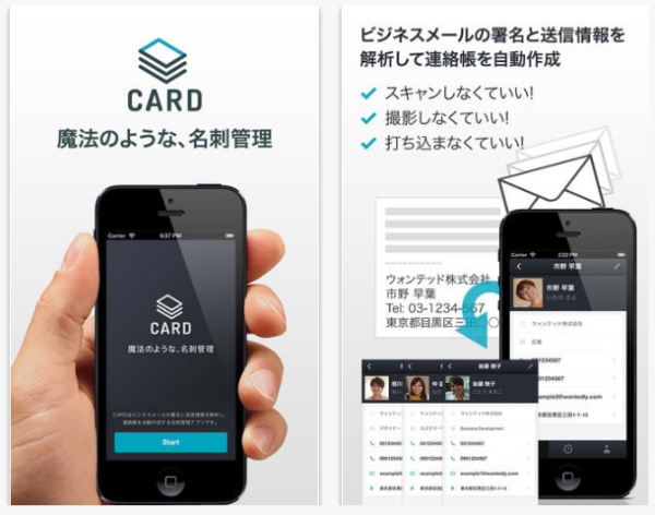 メールの署名と送信情報から連絡帳を自動作成するiOSアプリ「CARD」--ウォンテッド提供