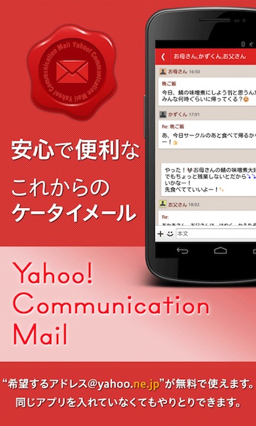 ヤフー株式会社は、チャット形式で気軽にメールのやりとりを楽しめるAndroid向けメールアプリ「Yahoo!コミュニケーションメール」の提供を開始した。