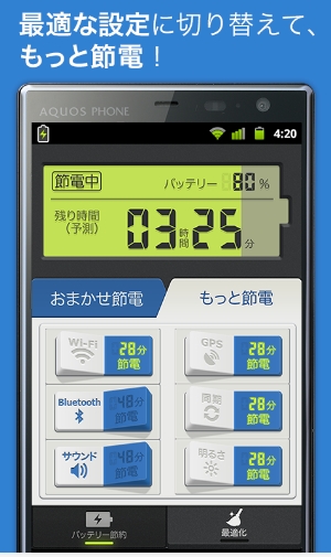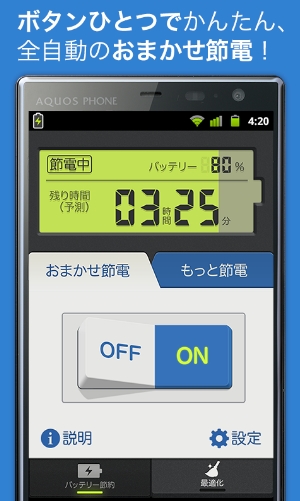 省電力面では、「おまかせ節電」機能をオンにすれば、自動で節電を実施。使用していないアプリの終了やバッテリ残量が少なければWi-Fiをオフにするなど、細かく省エネ設定ができるという。「もっと節電」では、どの機能をオフにすればバッテリを何分長持ちさせられるかを表示し、個別に機能をオフにできる。
