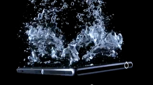 動画は30秒と短く、テキストやコメントによる説明がない印象的なもので、黒をバックにこれまで噂されている機能にクローズアップした映像が流れる。映像が始まると、まずは背面メインカメラの横に高画質のGレンズ採用をうかがわせる「G」の刻印が見える。また、「Xperia Z」では搭載されなかったシャッターボタンが備わっているのが確認できる。そして、高い防水性を誇示するかのような、水泡と共に水底に沈む「Xperia」が映し出される。
