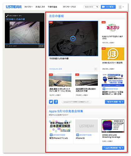 ライブ映像配信サービス「Ustream」の日本語サイトがリニューアル