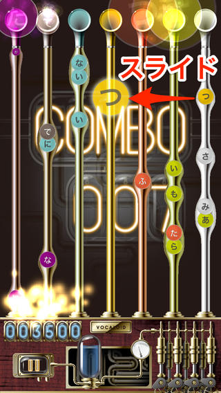 操作方法は、画面を流れてくる「ボカロダマ」を指先で左右にスライドして、同じ色のパイプの上に重ねる。操作に成功すれば正しい音程で歌ってスコアが加算され、失敗するとまちがった音程で歌う。連続で成功するとコンボになり、さらに成功が続くとフィーバー状態となる。また、ランダムで出現するアイテム「キャンディ」を同じ色のパイプの上に重ねると、一定時間、通常より高いスコアを獲得できる。ゲームの難易度は3種類から選択可能で、「Game Center」にも対応する。