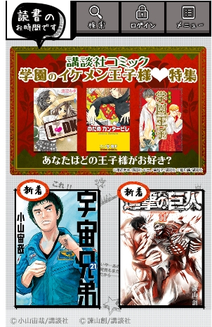 「読書のお時間です」は、「Ameba」の仮想通貨コインで電子書籍を購入できるスマートフォン専用電子書籍サービス。書籍のラインナップはマンガが中心で、「進撃の巨人」(講談社)、「ちはやふる」(講談社)、「黒子のバスケ」(集英社)、「君に届け」(集英社)、「名探偵コナン」(小学館)「銀の匙」(小学館)など、100社以上約4万冊が揃っている。