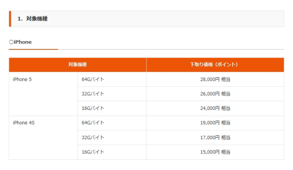 下取り価格はポイントとして還元され、機種変更の際にすぐに利用できる。iPhone5の下取り価格は64GBモデル2万8000ポイント、32GBモデル2万6000ポイント、16GB モデル2万4000ポイント。