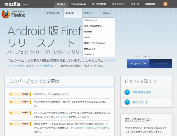 URL:http://www.mozilla.jp/firefox/android/24.0/releasenotes/#sec-issues