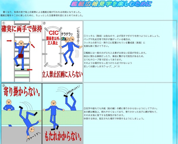 自衛隊宮城地方協力本部がWebサイトで公開している「艦艇広報見学を楽しむために」というページが、その独特の雰囲気から注目を浴びている。