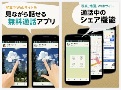 「Calll」では、通話中に地図やWebサイトの情報をシェアできるアプリ。シェアした情報を表示してスマホの画面をタッチすると、通話相手の画面にもタッチした場所が伝わる。シェアした写真や地図を相手と一緒に見ながらタッチすれば、地図のルートなどを伝える時にスムーズにいくとしている。