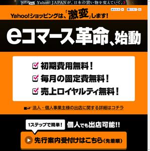 「Yahoo!ショッピング」では、これまでサイト出店料として初期費用2万1000円、月額費用2万5000円、売上げロイヤルティとして売上の1.7%~6.0%をヤフーに支払う必要があり、これらをすべて無料化されることになります。