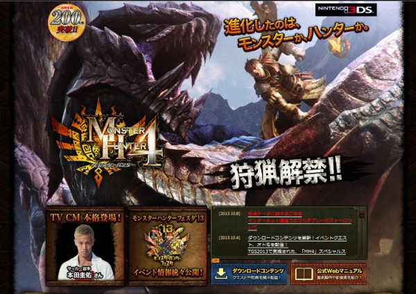 株式会社カプコンは8日、Nintendo 3DS用のゲーム「モンスターハンター4」において、任天堂株式会社が許諾していない装置やソフトを使ってゲームデータを不正に改ざんし、通常のプレイではありえない武器や防具、ギルドクエストなどを作成・使用する行為が確認されていると発表した。