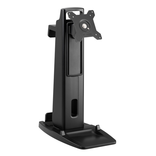 両製品はデスクにクランプなどで固定する必要のない台座式のディスプレイアームで、クランプ型のディスプレイアームと比較して設置の手間がかからない。ディスプレイの取り付けもディスプレイ背面にあるVESAのネジ留めのみで簡単に行える。