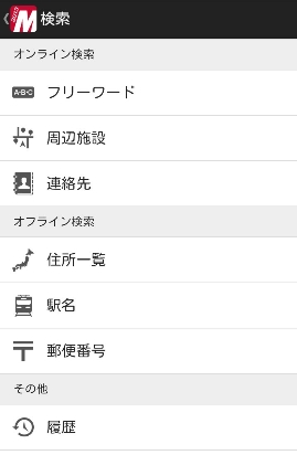 通常の地図閲覧機能に加え、豊富な検索機能を搭載。複数ワードで検索できる「フリーワード検索」、「周辺施設検索」、「郵便番号検索」などが利用できる。