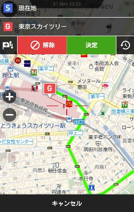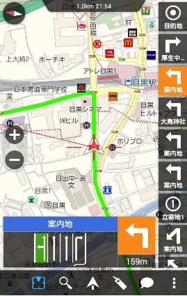 ルート検索は有料道路の使用の有無や自転車ルート、徒歩ルートなどが候補にあがり、所要時間や到着予測時刻、距離、料金などが表示される。ルート案内に関しては、走行中のオートリルートやレーン情報の表示にも対応。ノースアップ/ヘディングアップの切り替えも可能になっている。