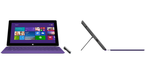 「Surface Pro 2」は「Surface Pro」の後継モデル。OSはWindows 8.1 Proを搭載する。CPUは1.6GHz 駆動のHaswell Core i5-4200Uを搭載(メモリ4~8GB)。ディスプレイは10.6インチのフルHD(1920×1080ドット)で、1024段階の筆圧対応デジタイザを備える。インターフェイスは、IEEE 802.11a/b/g/n無線LAN、Bluetooth 4.0、720p前面/背面Webカメラ、USB 3.0、microSDXCカードスロットなど。センサーは、加速度センサー、ジャイロ、地磁気センサーなど内蔵。バッテリは前モデルから75%向上しているという。本体サイズは274.6(幅)×173(高さ)×13.5(奥行)mm、本体重量約907g。