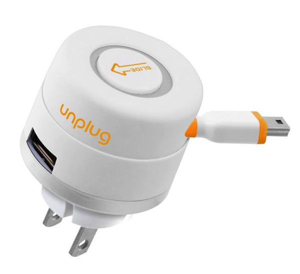 Unplug Travel Charger Retractable Cable + USB 1000mA