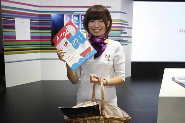 アドビブースでは、「Adobe Students Japan」のFacebookページに「いいね!」をすると、非売品のノベルティグッズがもらえるガチャを回せるほか、Adobe CCの活用法・現場の使用例などがわかる「Adobe Book」も進呈される。じつはこのパンフレットも、企画・編集に学生が関わっているという。