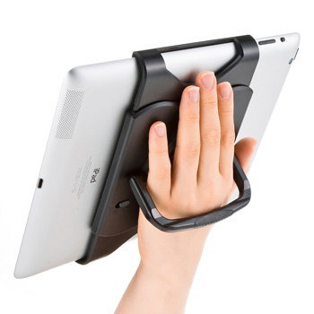 サンワサプライ株式会社は、タブレットを楽にしっかりと持てる縦向き・横向きの両対応のハンドルがついた、スタンドとしても使えるタブレットハンドル「PDA-TABH1BK」を発売した。価格は3500円。