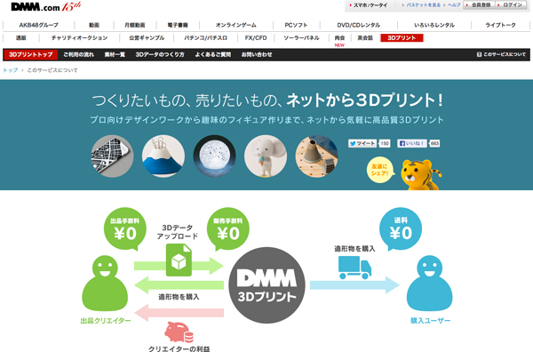3Dデータを出品して造形物を販売できる「クリエイターズマーケット」が正式公開