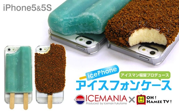 同製品は、年間1000本以上のアイスを食すアイス評論家・アイスマン福留さんがプロデューサーとして監修した、iPhone 5s/5用ケース。「かじりソーダアイス」と「かじりクランチアイス」の2種を用意しており、ソーダアイスのかじり口は氷菓アイス独特の霜柱状を、クランチアイスはクリーム系のラクトアイス特有のサクっとしたかじり口を忠実に再現しているという。