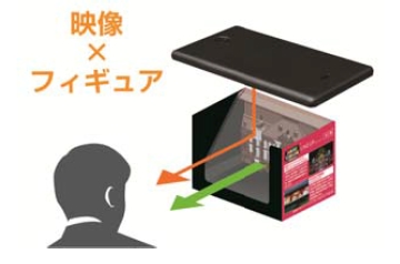 本製品は、「ハコビジョン技術」により、約8.5cm四方の箱の中で、実物のフィギュアと映像による立体映像を体験できるシステム。食玩の箱の中にフィギュアと映像投影用のクリアプレートをセットして、二次元コードで映像にアクセスしたスマートフォンを上に乗せて映像を再生すると、「3Dプロジェクションマッピング」や「3Dホログラム」の映像体験ができる。