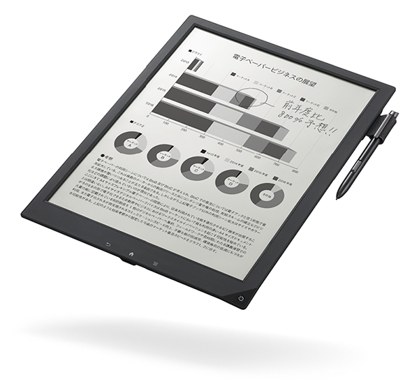 本製品は、A4サイズ紙の余白部分を除いた大きさである13.3型サイズ(1200×1600ドット)の電子ペーパー端末。付属のペンで画面に直接書き込めるほか、Wi-Fi機能でワイヤレスにファイルの共有も可能になっている。同社では、多量の紙を使用する現場において、ペーパーレス化を進められるとし、業務用に販売していく予定としている。