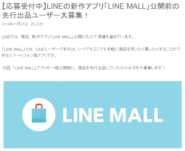 LINE株式会社は7日、公開準備中のLINEのユーザー同士が商品を売り買いできるスマートフォンアプリ「LINE MALL」について、一般公開前の先行出品ユーザーを募集すると発表した。