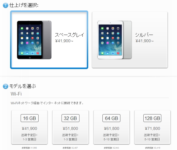 Apple、オンラインストアで「iPad mini Retinaディスプレイモデル」Wi-Fi版の発売開始