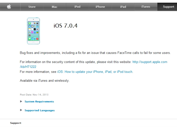 Apple、iOSを最新バージョン「iOS 7.0.4」に--FacceTimeとセキュリティの改善