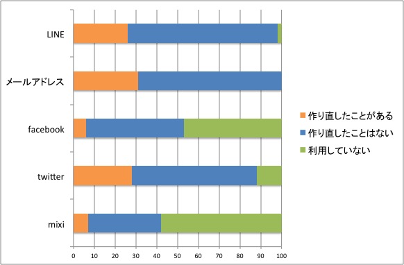LINEアカウントを作り直した経験のある女子高生は26%で、「ない」は72%。「LINEを使っていない」と回答したのは72%となった。また、LINEアカウントを作り直した経験のある人のうち、ここ数年で何回作り直したか質問したところ「1回」が84%、「2回」と「4回」は同率の8%となった。LINEアカウントを作り直した理由として「友達をリセットしたかった」「知り合いの人の「友だち」に自分が入っているのが嫌だったから」などが挙がった。