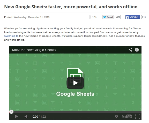 Google、新スプレッドシートはオフライン作業ができて読込も高速化