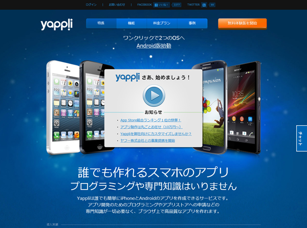 その状況が変わりはじめたのが今年、2013年だ。中小企業や個人がみずからのアイデンティティをインターネット上に置くことができるように、モバイル対応したWebサイトを簡単につくることができるようなサービスを提供する企業群が増えてきたのである。