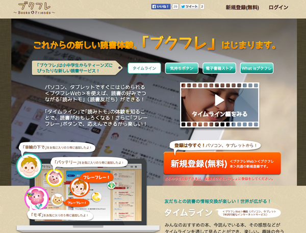 株式会社ベネッセコーポレーションは、小学校高学年から中学生向けを対象とした、電子書籍ストア「ブクフレ本」および読書に関するSNSサービス「ブクフレ Web」の提供を開始した。