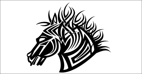 馬の頭部をモチーフにした、民族的な雰囲気のイラスト。個人利用、商用利用ともに可能です。
