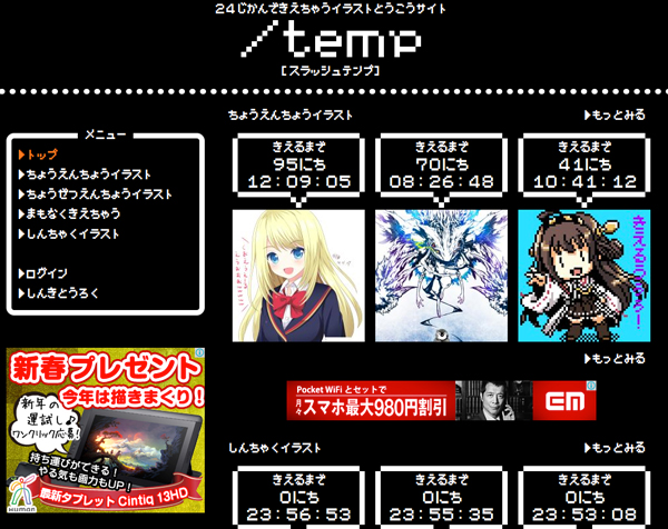 pipa.jpは、投稿してから24時間でイラストが消えるイラスト投稿サイト「/temp(スラッシュテンプ)」の提供を開始した。利用は無料で、会員登録が必要だ。
